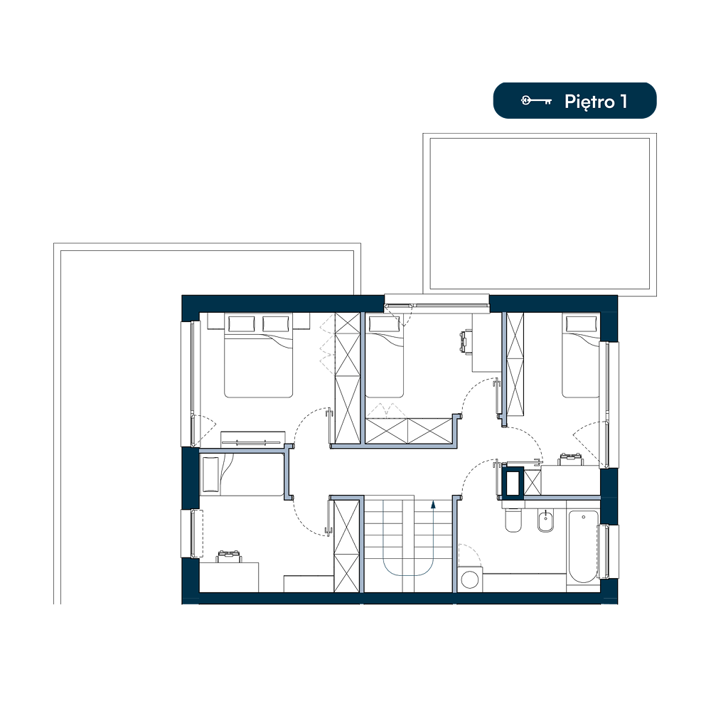 Dom jest łatwy do urządzenia i wygodny w codziennym użytkowaniu. Przemyślany układ pomieszczeń ogranicza niepotrzebne korytarze i pozwala lepiej wykorzystać każdy metr przestrzeni.