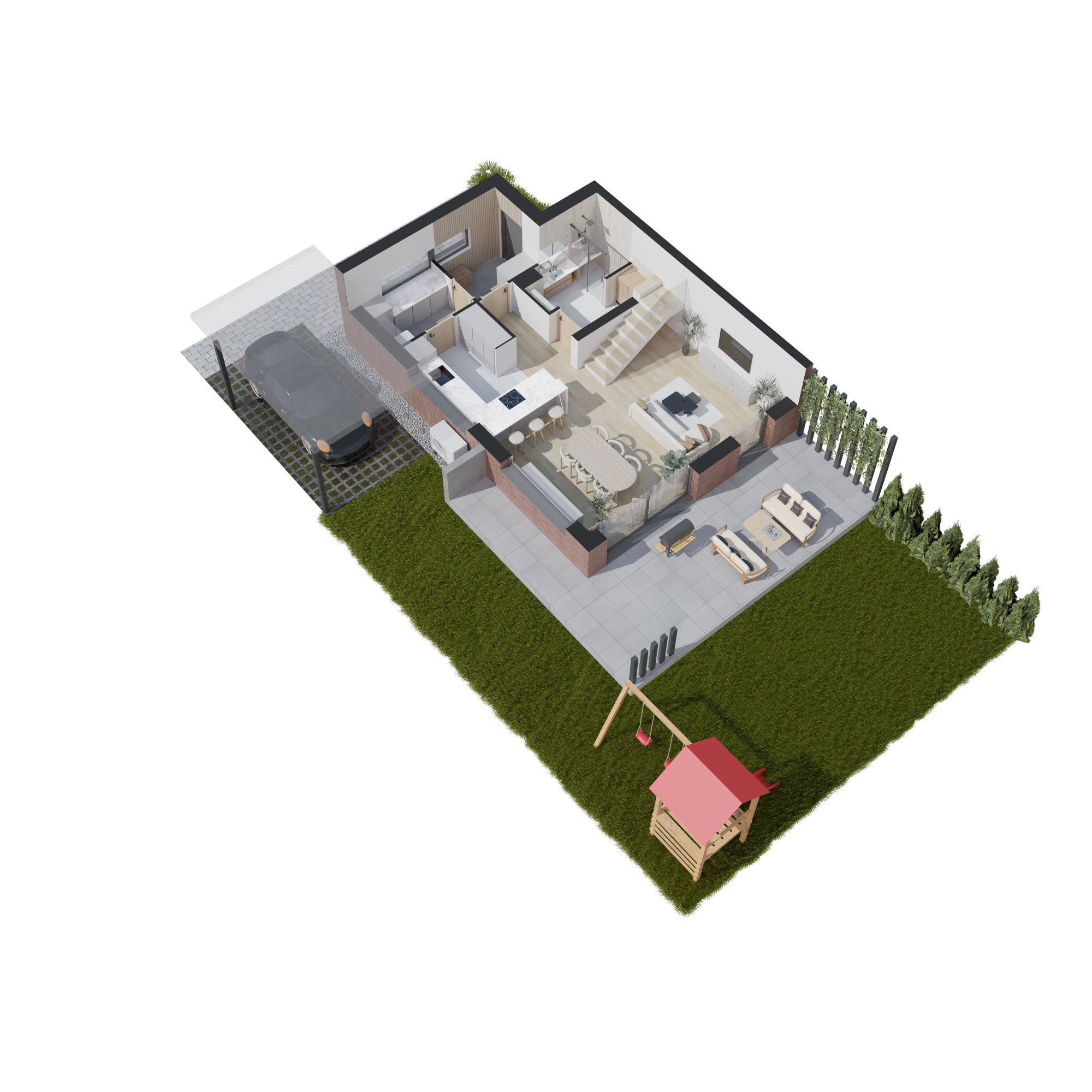 Wspólna przestrzeń dzienna daje domownikom więcej swobody i komfortu podczas codziennego życia oraz spotkań z bliskimi. Ponad 36-metrowy salon z kuchnią tworzy wygodne centrum życia całego domu.